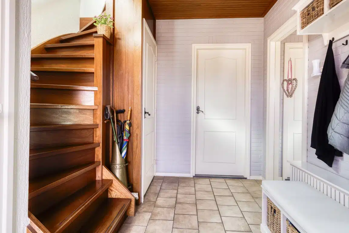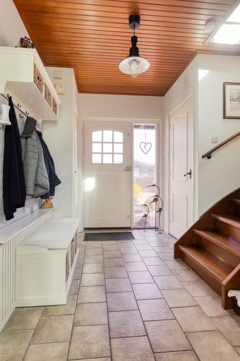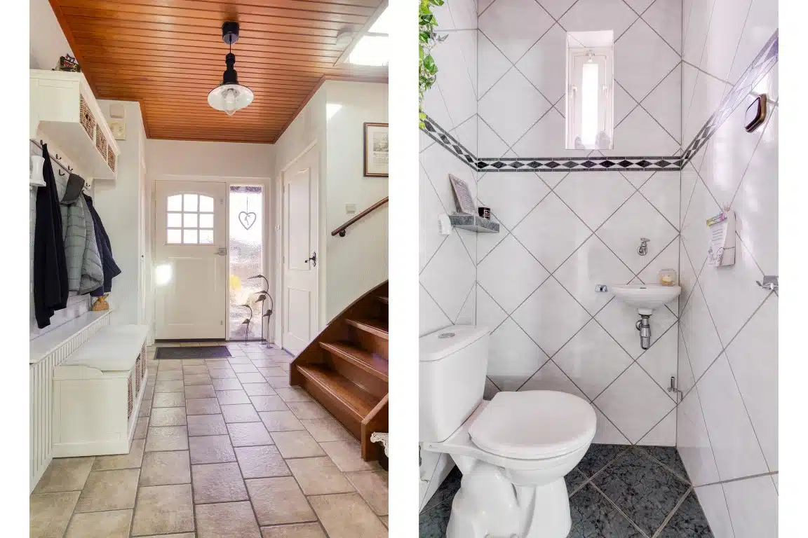Je komt binnen in de hal met meterkast, bergkast en toilet.