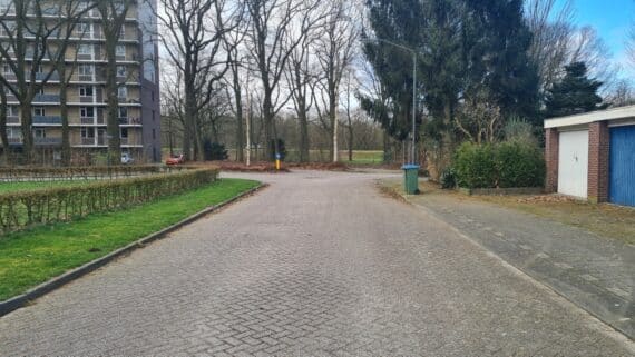 Een garagebox gelegen aan de Boerhaavenlaan in Oosterhout. Een rustige locatie naast woonhuizen tegenover een flatgebouw.