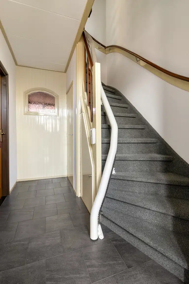 Je komt binnen in de hal met meterkast, bergkast en toilet.