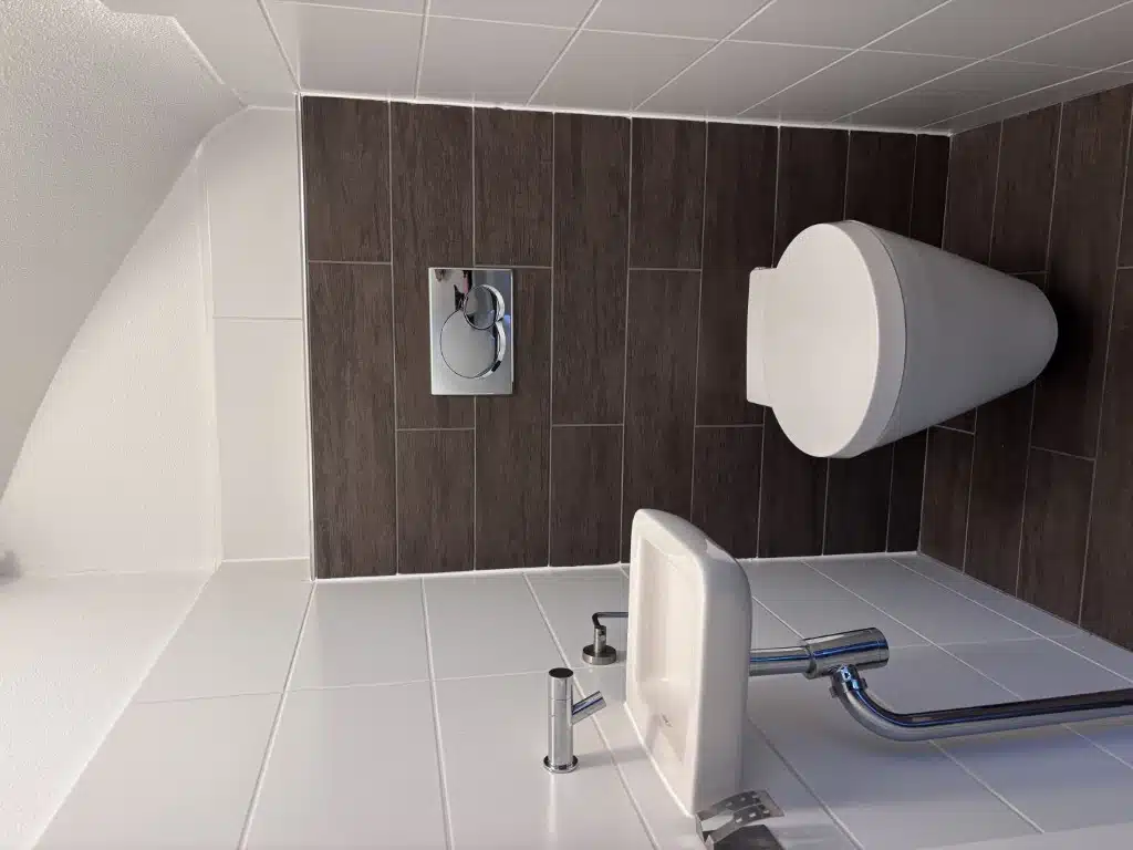Het toilet is netjes en modern afgewerkt.