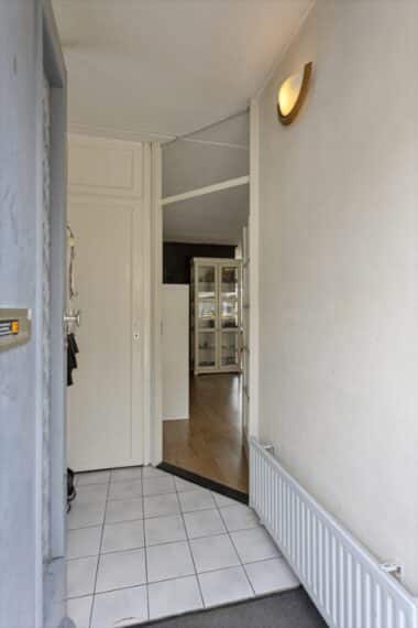Via de entree kom je de woning binnen. In de hal bevindt zich de meterkast, bergkast met de opstelling van de stadsverwarming en de toegang tot de woonkamer.