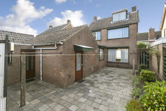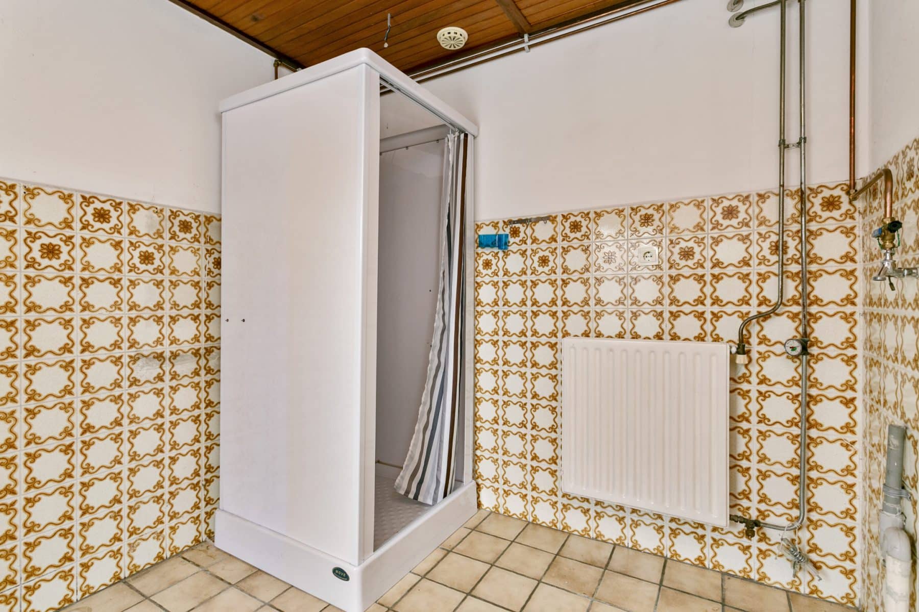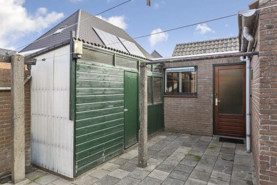 Vanuit de keuken kun je naar de bijkeuken en de garage. In de bijkeuken staat nog een doucheruimte maar is eenvoudig te verwijderen. De garage heeft een verbinding naar de berging welke is gelegen aan de achterzijde van de woning. Dit in combinatie met de zolder in de garage en bijkeuken is er genoeg bergruimte en / of hobbyruimte.