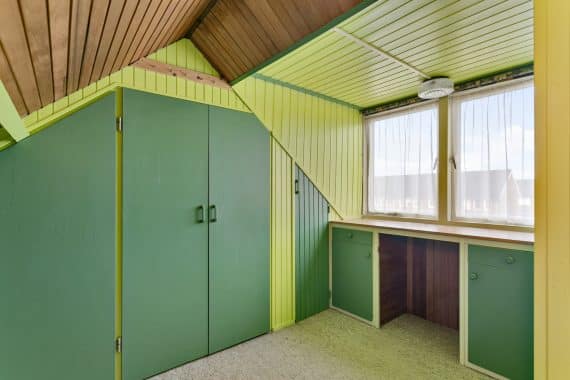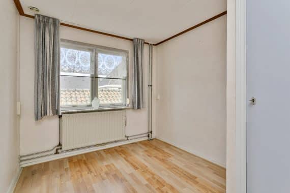 Een mooie zolderruimte waar een slaapkamer te creëren is. De ruimte is voorzien van een dakkapel en hier hangt de CV – ketel.